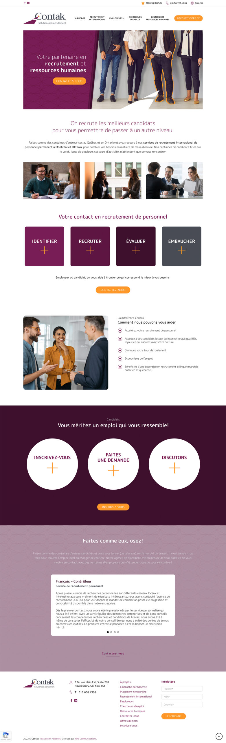 Le Québec et l’Ontario sont aux prises actuellement avec une pénurie de main-d’œuvre. Contak souhaite saisir l’opportunité actuelle et aider de nouveaux clients. Cela dit, la direction identifie des lacunes majeures au niveau de son image de marque et de ses outils de communication actuels, particulièrement au niveau du site Web.