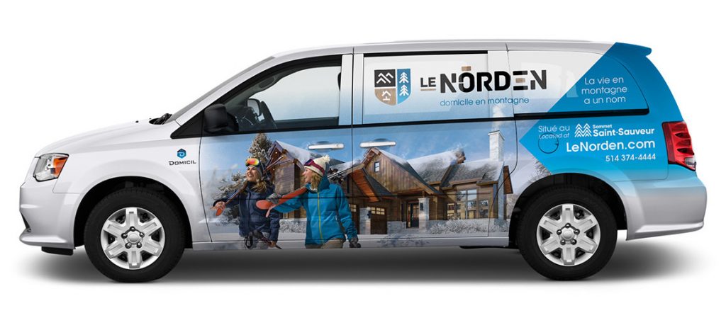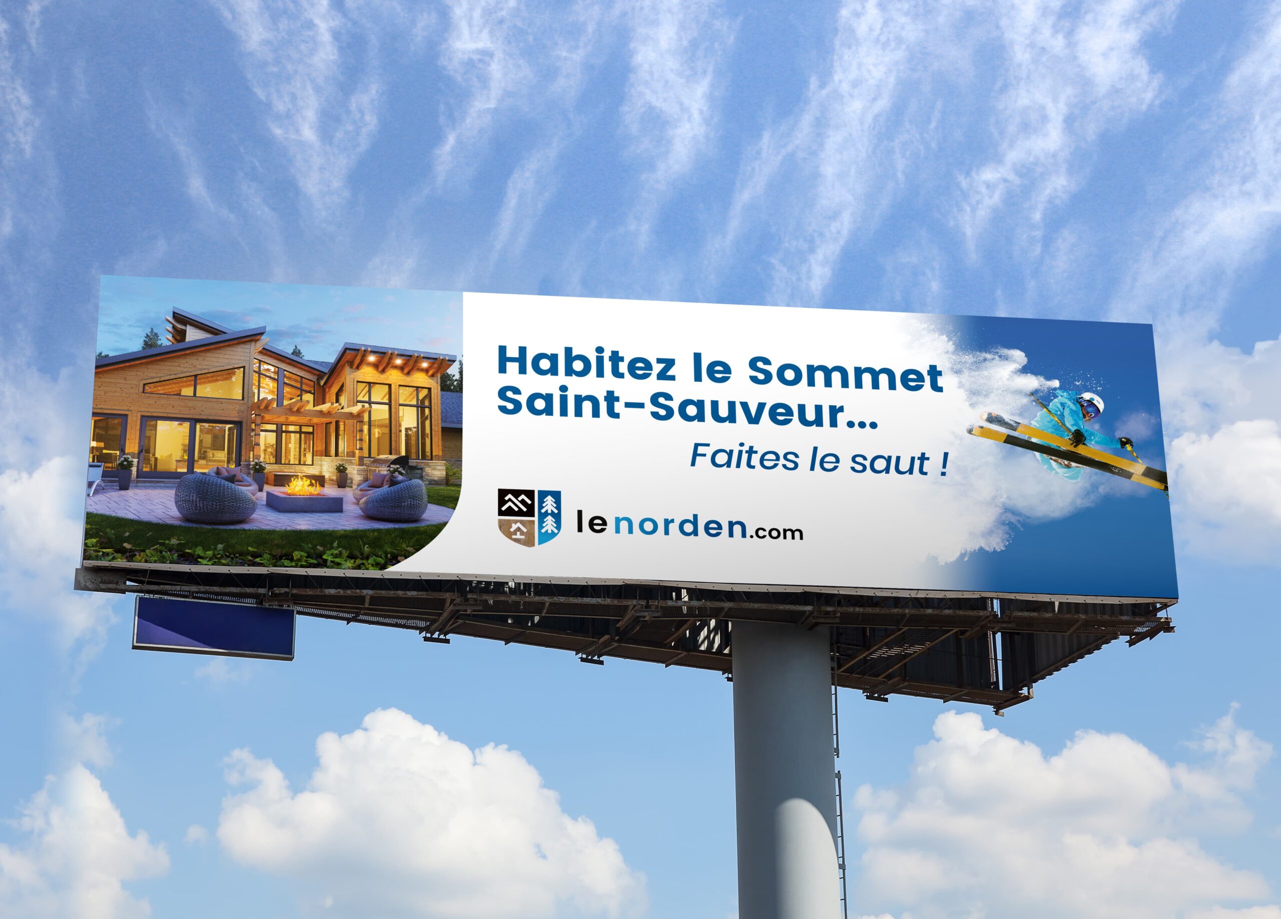 L’identité visuelle imaginée pour le projet s’inspire de l’architecture d’inspiration scandinave et de la situation géographique des terrains en montagne. Évoquant la nordicité, le nom de projet Le Norden a été imaginé. Le logo du projet, imprégné d’éléments nordiques, a aussi été conçu, accompagné du slogan de positionnement « Domicile en montagne », lequel est clin d’œil au constructeur Domicil et mise sur le caractère exclusif et privilégié d’une habitation au cœur du Sommet Saint-Sauveur.